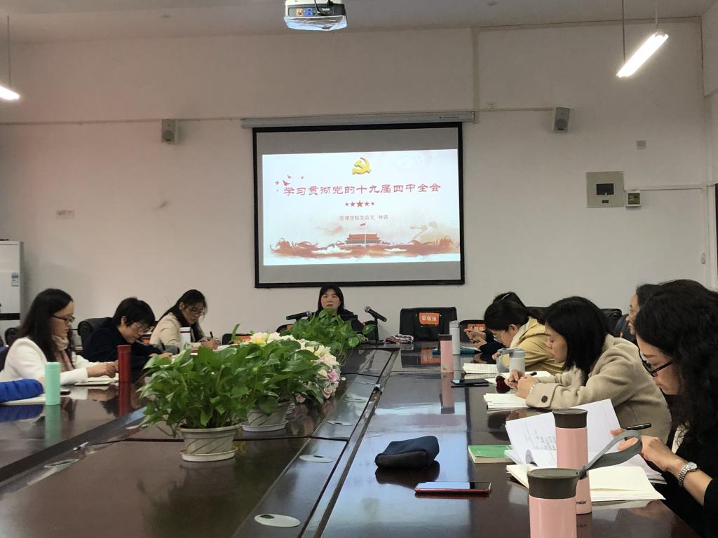 2019年11月13日,公司党总支钟茜书记开展“学习贯彻落实党的十九届四中全会精神”为主题的专题党课,传达十九届四中全会精神,雷火竞技官方网站全体教师党员参加学习。