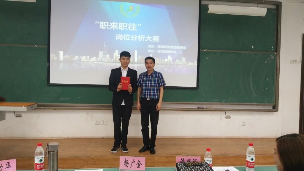 经过初赛阶段的激烈角逐,共选出15位同学参加6月19日在励志楼301举行的决赛。决赛共分为二个阶段:首先,参赛选手通过PPT等形式围绕自己所选择的行业与具体岗位,结合自身的优势、特长等进行求职演讲;其次,评委老师针对参赛选手的岗位分析报告和求职意向进行提问并对选手的回答进行点评。经过长达2个半小时的激烈比拼,来自17连锁经营管理的王胜同学以优异的表现获得了本次大赛的冠军。最后,在杨广金老师精彩的点评与总结下,本次“职来职往”岗位分析大赛圆满谢幕。