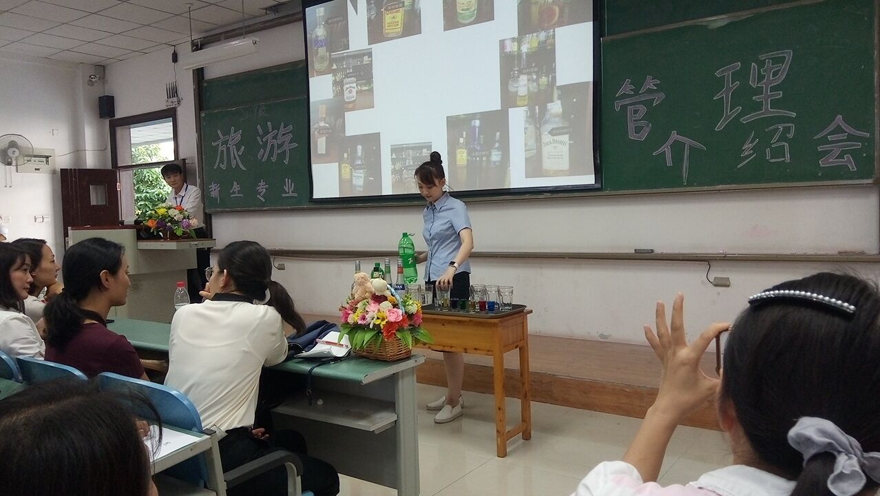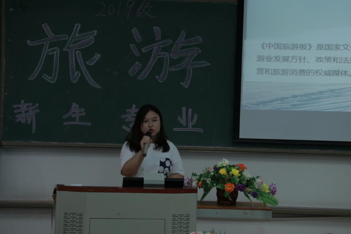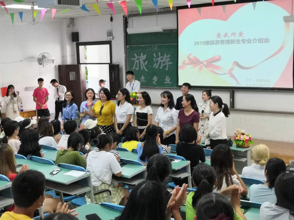 9月29日下午,19级旅游管理的新生们在D302迎来了以“爱我所爱”为主题的新生专业介绍会,并邀请到办公室副主任徐巧老师和连锁经营管理教研室全体老师出席。本次专业介绍会以“爱”为主题,增强2019级新生对学校、学院尤其是旅游管理专业的认同与热爱,初步明确职业规划的同时提升幸福感、归属感,为新生营造有温度、有深度、有态度的校园生活和学习氛围。本次介绍会主要提炼了两个“正确的选择”来激发员工爱学校、爱专业。一是选“长红款”行业,重庆市综合性战略支柱产业——旅游业;二是选“国家级”专业,重庆高职旅游管理专业中唯一的国家级重点建设专业——旅游管理专业。