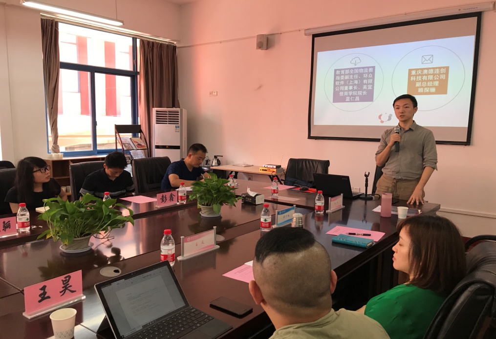 主题发言阶段,智慧物流专业群行业企业主题发言在主题发言阶段教育部全国物流教指委副主任、环众软件(上海)有限公司董事长、美宜佳商学院经理蓝仁昌博士和重庆澳得连创科技有限公司副总经理顾探骊分别进行主题发言。