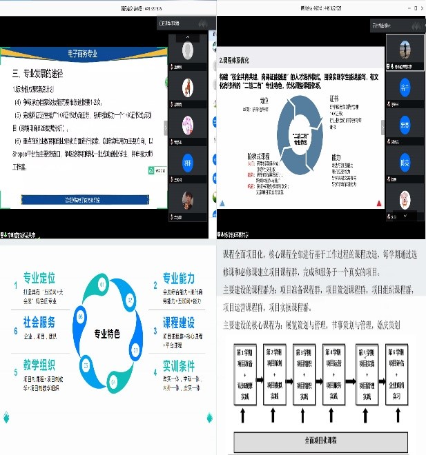 本次共有9名专业带头人(专业责任教师)分别说9个专业。他们围绕学院设定的说专业提纲,做了精美的ppt,录制了20分钟的视频,在比赛中进行了充分的展示。对于如何深化产教融合、开展校企合作;如何体现立德树人、三全育人、课程思政;如何优化专业课程体系,培养员工核心技能,做好1+X证书试点;如何打造专业特色,提升人才培养质量,每一个专业都有独到的见解。