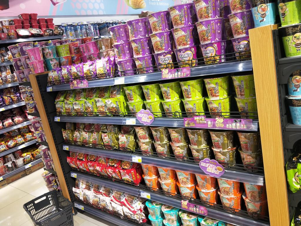 本次实训内容为《门店布局与商品陈列》课程中的陈列模块,主要考察员工商品陈列、商品上架、理货等能力。实训中,同学们针对饮料和方便面两个品类商品进行商品上架,能够做到靠前陈列、排面统一、正面朝外、纵向陈列,展现了较好的实践动手能力,完成一次完整的基础陈列工作。