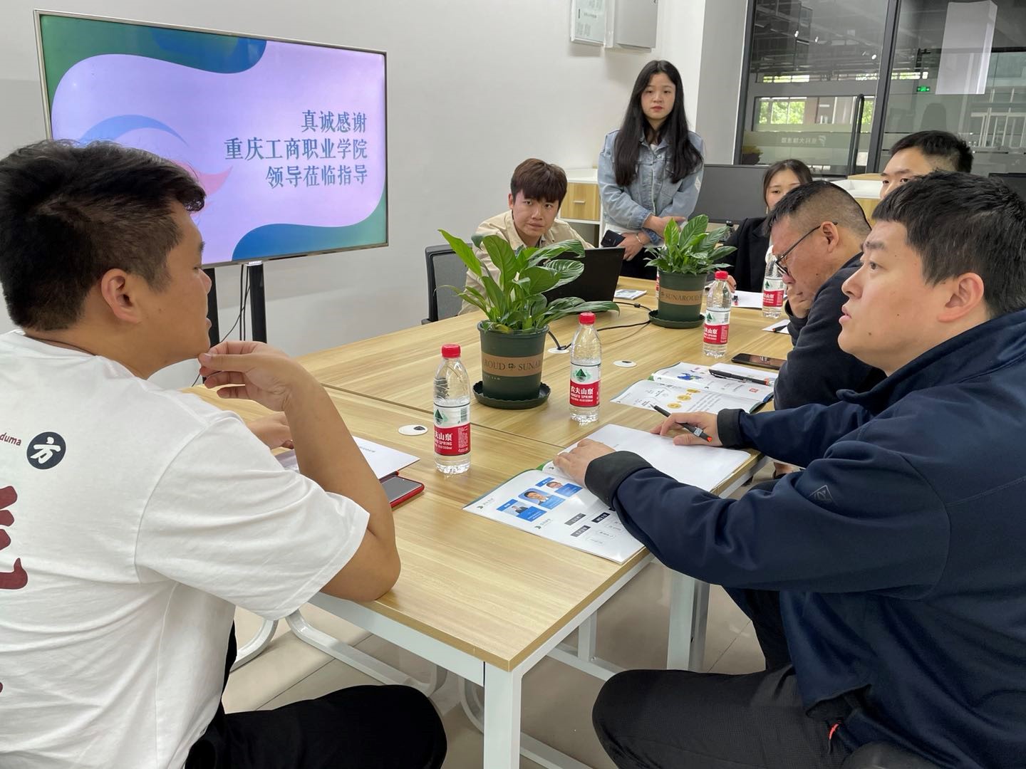 调研指导组一行参观了解了展厅内高校科技成果,并开展了交流座谈。会上,重庆智甄生物科技有限公司总经理张兴智对各位领导的到来表示欢迎,他代表雷火竞技官方网站介绍了校企合作项目建设工作进度;公司综合实习生隋晓林对公司2021年第一季度工作进行汇报,并对公司申报重庆市老员工创新创业平台进行了介绍。