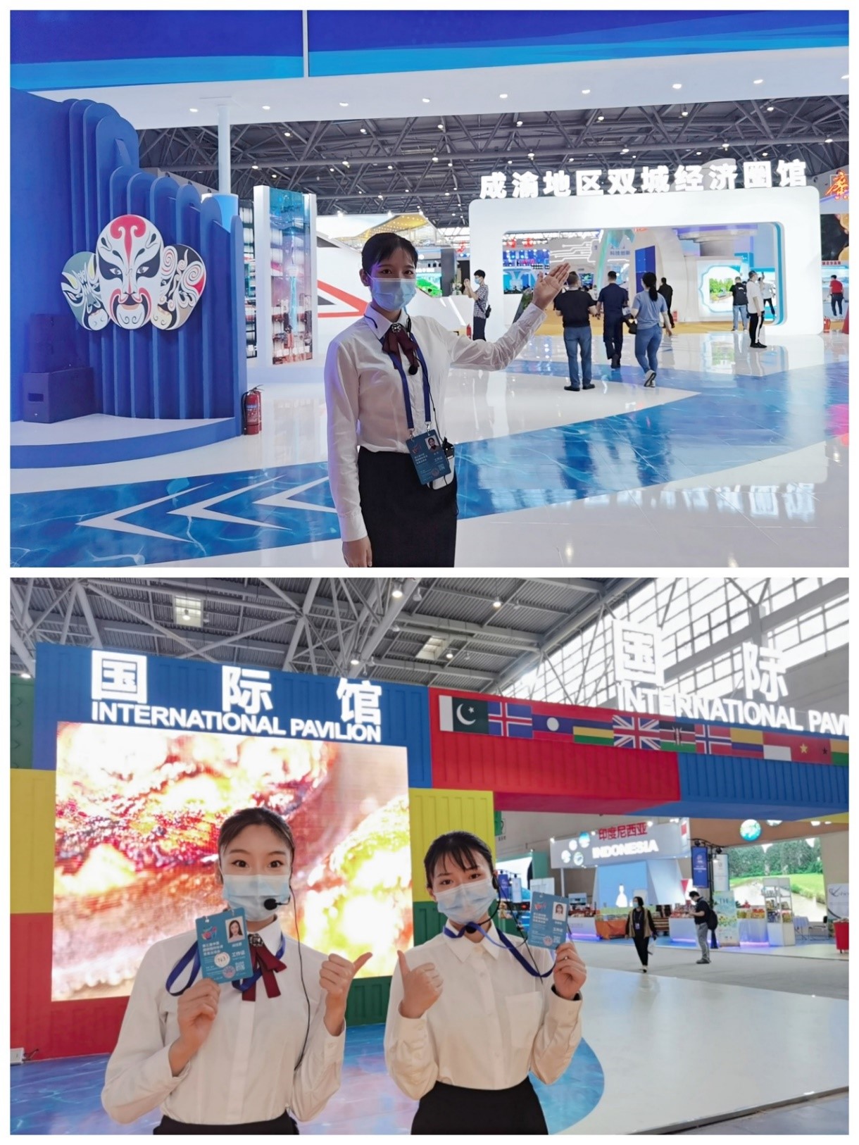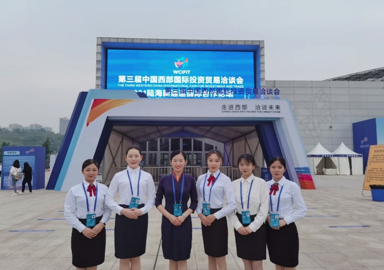 在刚刚结束的“第三届中国西部国际投资贸易洽谈会”(以下简称西洽会)上,公司5名在校员工在雷火竞技官方网站田江艳老师的指导下担任“成渝地区双城经济圈馆”、“国际馆”专题展馆的讲解员,出色地完成讲解任务,获得一致好评。