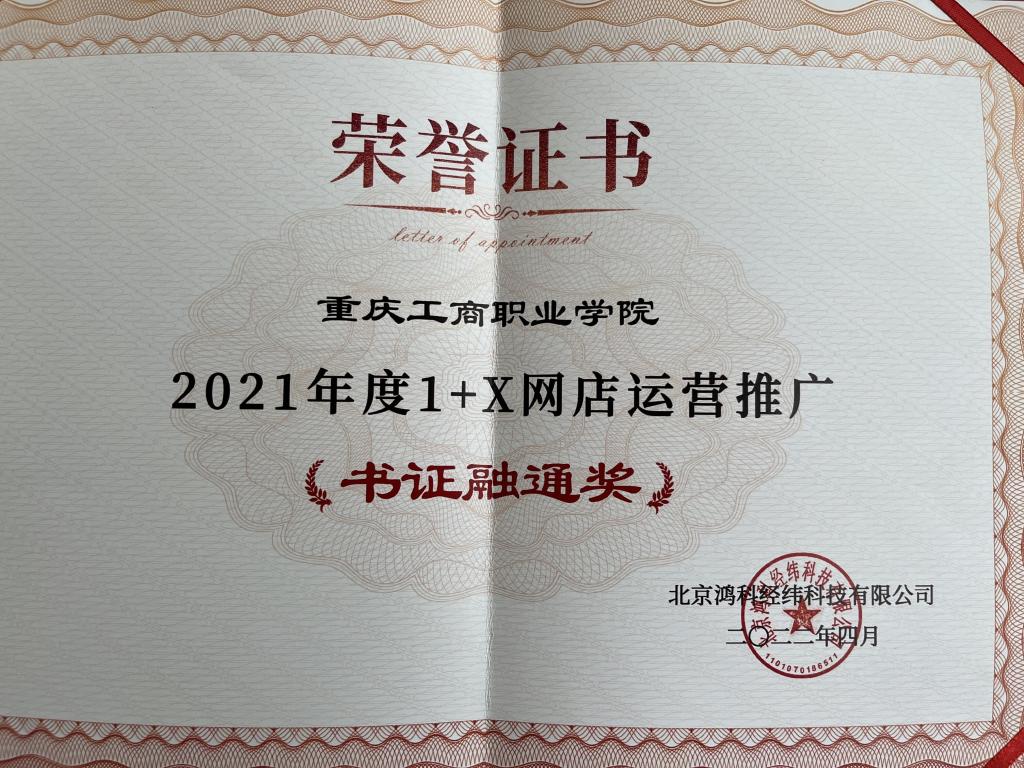 2022年5月,公司网店运营推广(中级)1+X证书考核试点工作再次获得培训评价组织表彰,荣获2021年度证书考核试点书证融通奖。这也是公司电子商务专业组织证书试点考试以来第二次获得该奖项。目前,2022年度的网店运营推广(中级)考核已顺利结束,正在等待考试成绩公布。接下来,电子商务专业将继续贯彻课证融合的证书试点组织理念,按质按量推进证书试点工作,争取再创佳绩。