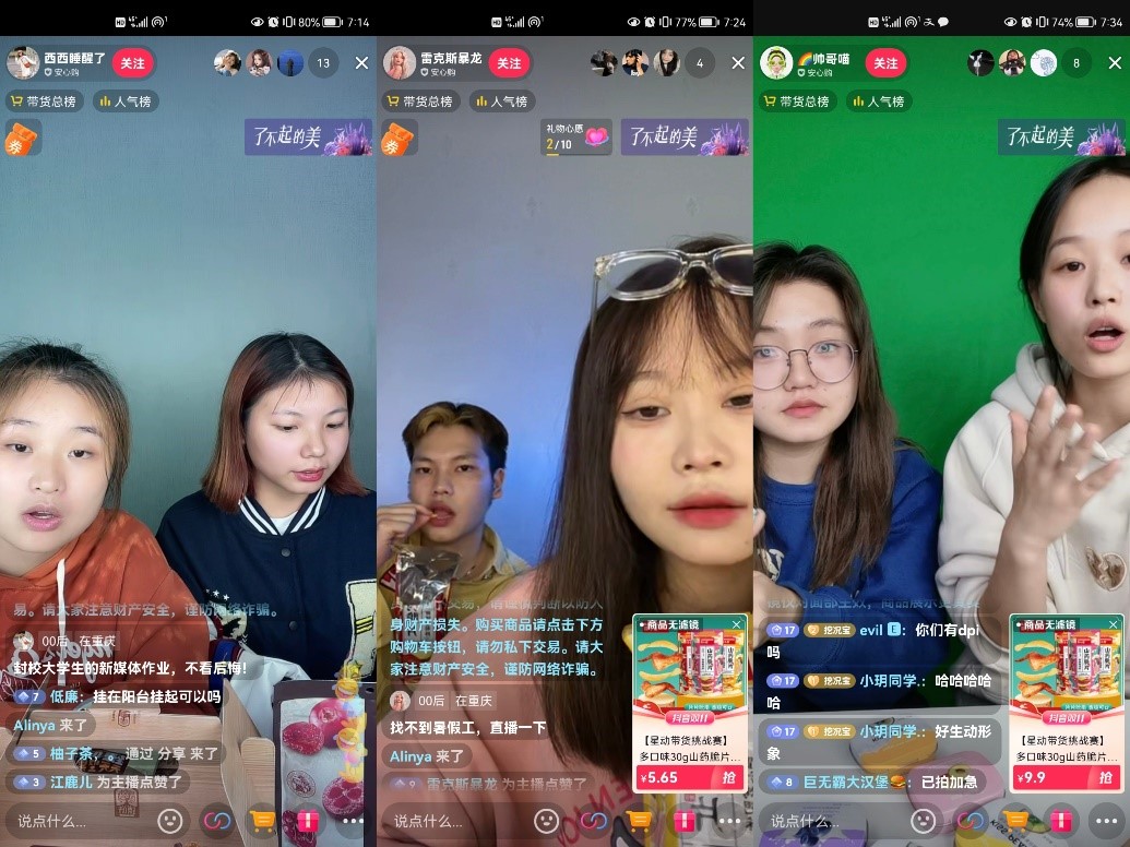 由抖音集团旗下抖音数字学堂发起的直播带货技能比赛活动——“星动带货挑战赛”于11月19日圆满落下帷幕。全国参赛队伍共有162支,公司14名同学,组成三支队伍,参加了本次大赛。大赛从2022年10月28日开始一直持续到11月11日,从销售GMV、GPM、场观人数三个维度的数据进行综合评选。经过2周的激烈角逐,公司一支队伍获得全国三等奖,且获得“潜力带货主播”称号,另外两支队伍均获得“优秀参赛选手”称号,成绩喜人。