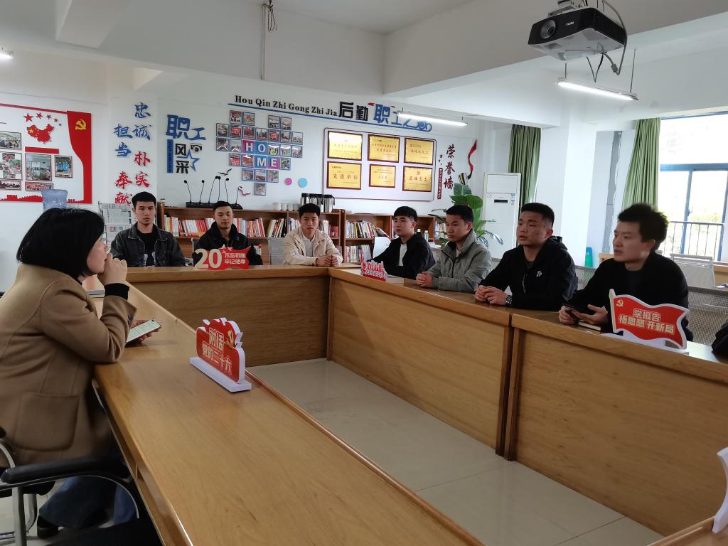 钟书记结合党和国家的中心任务,鼓励退役复学员工将小我融入大我,把部队的优良作风和传统传承延续,通过实际行动感染身边的同学,在服务班级同学的过程中发光发热,提升班级的凝聚力、组织力、战斗力,并就学院特色团支部的组建听取了退役复学员工的建议和想法。