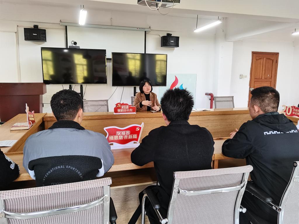 近日,公司党总支书记钟茜老师在李园社区对公司退役复学员工进行了二十大精神宣讲。钟书记就中国式现代化的本质围绕员工的实际情况进行了深入浅出地讲解,结合二十大报告中习近平总书记对青年的嘱托,鼓励退役复学员工做有理想、敢担当、能吃苦、肯奋斗的新时代好青年。